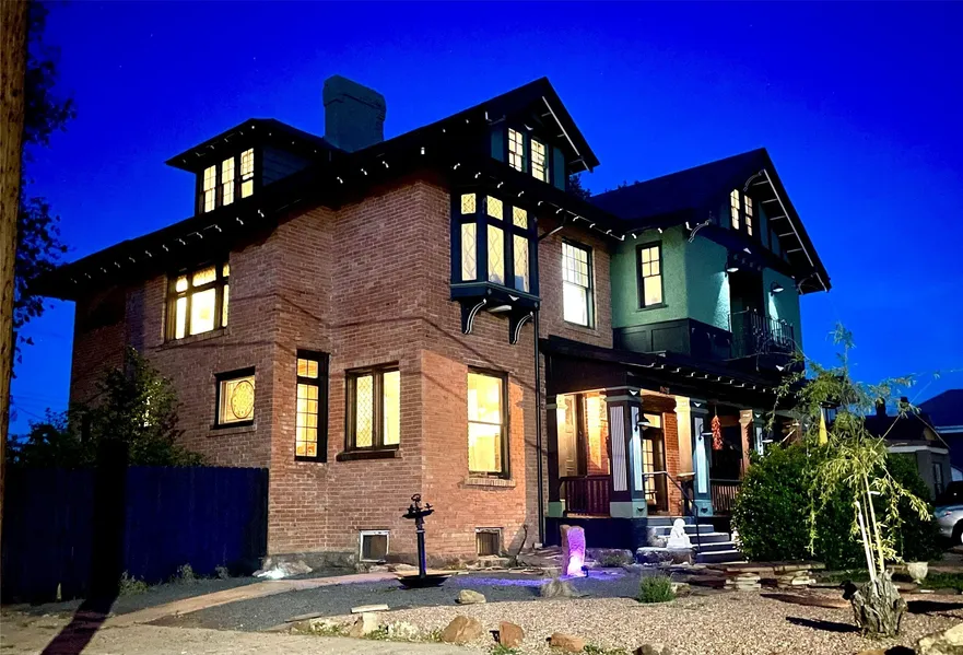 MOTIVATED SELLERS, BRING OFFER! 2025 historic preservation award winner. Gracious mansion designed by renowned Rapp and Rapp architects and built by historically significant merchant Cecilio Rosenwald (builder of historic Coronado theater) in 1913, utilizing the best materials and craftsmanship - the antique brass Antwerp Lion doorknobs still work perfectly! Recently restored and updated while preserving the historic charm. Hardwood floors, oak panelling, high coffered ceilings, many bay windows - enchanting details throughout! Too many updates to list including new: roof, boiler, granite counters, appliances, paint, landscaping, etc. Flexible floor plan - click video link! As you approach the home you are greeted by a large front porch. Enter the foyer through a towering oak front door. Ground floor includes a library-foyer with grand gas fireplace, living room with bay window, formal dining room with pellet stove, sunroom with doggy door to fenced yard, kitchen with breakfast bar and Forno gas range, walk in pantry, powder room, and a full bathroom. Take either the grand staircase or the servants stairs to the second floor which includes master suite with balcony, walk in closet and en suite bathroom, 4 other bedrooms, one with gas fireplace currently used as tv room, a deck, and a bathroom with laundry so you don't have to schlepp laundry up and downstairs! On the top floor is a 2 bedroom apartment that was originally built as servants quarters and has generated income as an airbnb. It can be accessed via the outdoor stairs with a separate entrance or from the inside of the main home for guests. The basement is partially finished with a great room, kitchen, bathroom, laundry, and several storage/hobby rooms. The back yard has 2 pear trees, a well for gardening, and a carriage house that has lots of potential. In town walkability near Highlands University, shopping, 10 minutes to Montezuma Hot Springs, 20 minutes Hermit's Peak and National Forest, on city water and sewer, so all the convenience and elegant luxury you would need. Be sure to click on the video link. Owner is listing realtor. Square footage is not guaranteed. Foo dog statues on front steps will not convey.