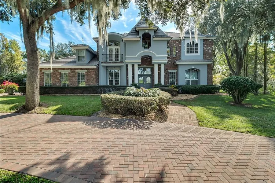 One of a kind majestic French Country Estate on the Clermont Chain of Lakes with over 600 feet of lake frontage on Lake Minneola. This beautiful home built on the 500 year flood plain does not require flood insurance and was built with antique bricks dating back to 1854. Boasting its own private boat ramp, an oversized dock with a boat lift and a detached two story garage with three phase electric, a 13 foot door, an office and workshop. The home features 4 bedrooms, 3 full baths plus two half baths, an oversized 3 car garage, and plenty of living space checking off all the boxes for the ultimate lake house. The formal living room includes crown molding, a fireplace and built-in shelving while the formal dining room lies adjacent and boasts Red Oak trim and crown molding. Through the glass enclosed French doors you will find the den which also has another set of French doors leading you out to the screened-in lanai and pool area. The open kitchen has an oversized breakfast bar, a butcher block free standing island, and Hickory cabinets with a tile backsplash, built-in double ovens and a French door refrigerator. The ample dinette space is shared with the kitchen and spacious family room which is adorned with a brick floor to ceiling fireplace with a custom limestone mantle. The lake views from this open living space is just spectacular! All the bedrooms are upstairs and can be accessed via the stunning spiral staircase at the entry or through the private back stair case off the kitchen. The owners suite features a two sided fireplace providing warmth to both the bedroom and the large sitting room. The sitting room could make the perfect nursery, office or workout space. The master also provides a balcony with amazing views of the lake, two walk-in closets, and an en-suite bath with separate vanities, jetted tub, and separate shower. The additional bedrooms are located down the hall; one with a private bath and a balcony overlooking the conservation marsh and the other two sharing the remaining full bath. This home is equipped with a large utility room and plenty of closet and storage space. Entertaining has never been easier out back on the brick lanai leading to the custom pool and spa adorned with a rock formation overlooking a huge yard with a conservation easement and unspoiled views of the lake. With over 2 acres of land, this private estate is waiting for you to create memories that will last a lifetime.