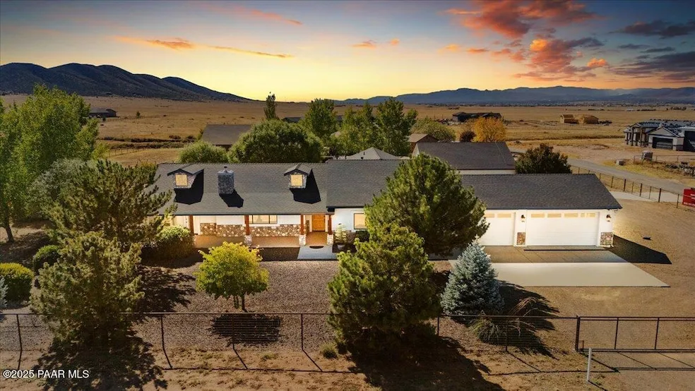 Incredible Opportunity!Experience true Western ranch living in this stunning Ranch-Style home located in a desirable equestrian neighborhood. This property is fully equipped with a horse arena, barn, and turnout area -- perfect for horse enthusiasts. This rare **5-bedroom, 3.5-bath** home features an inviting open layout with **two spacious living rooms**, ideal for multi-generational living or entertaining guests. The **island kitchen** boasts **solid-surface countertops**, **Alder cabinets**, **stainless steel appliances**, and a **huge walk-in pantry**. Enjoy beautiful **wood floors**, a **stone fireplace with wood-burning stove**, and a **split floor plan** for added privacy. also enjoy lower utility bills with your solar panels. Step outside to your private **outdoor grill area**, **lush grassy backyard**, and a **wonderful greenhouse**. The property sits on **fully fenced 2 acres** with great views, and includes a **4-car attached garage** plus an **oversized detached 4-car garage/shop space**--plenty of room for vehicles, equipment, or hobbies. Additional highlights include a **whole-house fan**, **ceiling fans in every room**, and an **in-ground 2,500-gallon water storage system**. This home combines comfort, functionality, and country charm--truly a must See