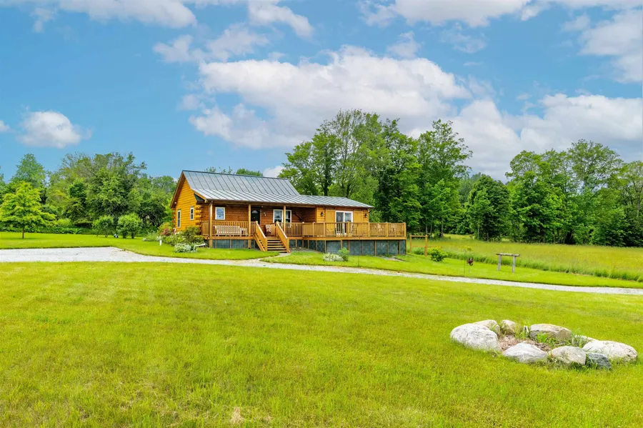 This stunning log cabin property, nestled on an expansive 35.3 acres, offers a unique opportunity to embrace the Vermont country lifestyle. Composed of two separate parcels, this property provides remarkable flexibility and potential. Live the equestrian dream or expand your horizons. Parcel one, 8.2 acres, features a beautiful two-bedroom, two-bath log cabin, complete with a fenced-in horse pasture and a two-stall barn. The barn includes a tack room and additional storage space, which could easily be adapted for use as a garage. Parcel two, 27.1 acres, a separate parcel of land, this acreage boasts a state-approved septic design already in place for a three-bedroom dwelling, perfect for building your dream home or expanding the existing property. This parcel can also be purchased separately (see MLS # 5046269) Unbeatable Vermont charm & convenience, an idyllic location surrounded by breathtaking Vermont countryside and gorgeous panoramic views, enjoy the tranquility of a quiet, remote country setting. Conveniently located just minutes from I-91 and numerous local amenities, you get the best of both worlds – seclusion and accessibility. Cabin features lovely landscaping, a charming, covered porch, and a spacious open deck. Inside, single level living at its finest with 2 bedrooms, 2 baths, open concept kitchen and dining and large living room with a small office space. Don't miss out on this extraordinary opportunity to own a piece of Vermont paradise!