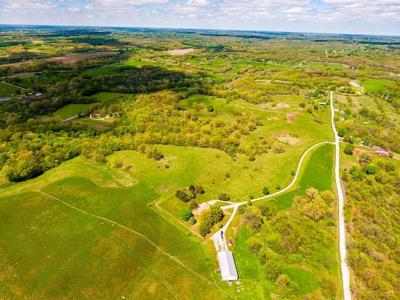 This well maintained ranch home with full walkout finished basement lies on a rolling 41 acres with unparalleled views sitting high amongst the hills overlooking Missouri River bluffs in southern Excelsior Springs, MO. The home provides 3 bedrooms, and 3 full bathrooms with a finished walk out basement. The open country style kitchen with breakfast kitchen and large windows makes for a great place to enjoy morning coffee as the sun comes up. A location for a walk out patio from the living area is established for someone to complete it to their own taste. A 80x40 building sits on the southeast corner of the property next to the home. The land has a balanced mix of pasture and timber containing large oaks and black walnuts alongside a steep rock outcropping ledge ravine to the North and more gentle slopes to the south. A fertile well laying 4.5+/- acre alfalfa field is on the southern portion of the property. An excellent location for bow hunting or rifle hunting in these large timber draws where turkey have also been seen frequently roosting. There is a nice pond approximately an acre in size on the perimeter is currently fenced, but would also make for a great fishing hole. This property is also a good location for some moderate to aggressive ATV trails for the kids and family to enjoy. Call Will Wiest to arrange a private showing or to request additional information.