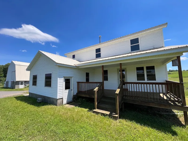 We are pleased to present a beautiful farmhouse on 30 acres with a newer built dairy barn just minutes from Fillmore and Houghton. This property has 2,150 feet of road frontage gently rolling thorough Allegany County farm lands with views of hills and valleys, corn fields and woods. As you enter the property you will enjoy a circle driveway to a large 5-bedroom two bath house with full walkout basement and large unfinished upstairs for more bedrooms or living space. Well finished hardwood floors grace the lower level while the large open style kitchen has oak cabinets and plenty of space for large gatherings with an on board dining room. The kitchen wraps to the living rooms (2) and has views of the farm through several vinyl double hung windows. Two large, covered decks, front and back provide a lot of extra outdoor living space. The rear porch in particular has wonderful views east for spectacular sunrises. A handicap access ramp is a bonus for entry, while the basement has a lower level entry too. The basement is a full height space with poured concrete floors and fox block walls. Plenty of space is here for finishing into a rec room or lower level living area with window views east. The property is surrounded by tillable acres, and today has corn planted. The Land could be tendered or rented for crops. On a successful Dairy farm called Willow Creek Farm, the barn is also newer and could be home to cows, horses and light animals once again. A haw mow above comfortably holds a couple thousand bales Check this property out, close to town, but country quiet, this property would make a wonderful home with a farm charm lifestyle. ADDITIONAL INFORMATION: GMO's convey, 2,150 ft road frontage, Newer Farmhouse (2014) Hardwood floors, Oak Cabinets, Walk out basement, Dairy barn (2014) Electric at the road, (700 feet), Views, Two covered porches, Metal Roofs, 4.4 miles to Fillmore, NY, 3.3 miles to Houghton, NY, 2.7 miles to Centerville, NY, Sold AS IS.