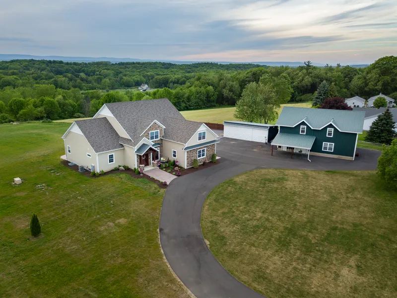 Looking for a place to house your business, car collection, farm equipment, horses, w/ an executive heated and cooled separate office suite? Looking to combine that with a gorgeous custom home a few steps away to relax and enjoy sunsets without the commute? Want to be minutes to Saratoga? We have you! This over-sized heated/cooled huge garage has it all, including a workshop, private office for 3, full baths & flex / artist /teaching/ whatever space. Many options! An add't 2+ acres available for sale with this purchase. The lux custom home boast two first floor masters, a 2nd floor media room, add't large bedrooms, floor to ceiling windows, a sunlit paradise with features like Bertazzoni range, radiant flooring areas, Roman shower, elegant custom cabinetry and more. Saratoga Lake area.