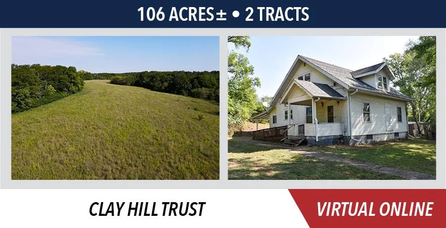 The Clay Hill Trust farm is located in Section 9, Danville Township, Des Moines County, Iowa, 4 miles southwest of Danville, Iowa (13 miles west of Burlington, Iowa). From Danville, Iowa proceed south on Co. Rd. X31 1 miles to Co. Rd. 79, turn right or west and go mile to 202nd Ave. Turn left or south and proceed 1 mile to Agency Rd., turn left or east and go mile to 200th Ave., turn right or south and proceed 2 miles to Skunk River Rd. Turn right or northwest and go mile to the farm. (Be watching for presale directional signs)