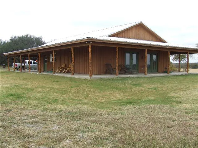 Improvements: Beautiful custom built home with approximately 1600 sq. ft. living area with large dry-stack rock fireplace including cedar mantle and stone hearth for additional seating; High vaulted ceiling in living area and recessed lighting throughout structure, Large open kitchen area with custom cabinets; house has a large wrap around covered porch which is also accessible by French doors from bedrooms; detached storage room; gravel county road access; water well; new large pond stocked with baitfish; good to excellent fencing; excellent ranch roads; 30 acres currently in hay production.
