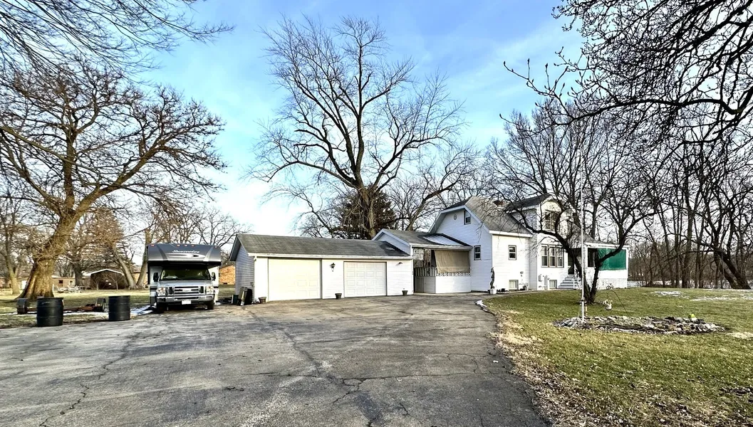 MOVING IN PROGRESS, please excuse our mess. Winter pictures don't do this home and property justice. Nestled on 1.30 acres on a quiet dead end street and right on the Kankakee River in Aroma Park. Use your imagination and transform this home into an awesome boatable riverfront property for the summer or an Airbnb! Lots of charming features all around, like front and back porches, a breezeway between the back porch and the oversized 2.5 car garage (24 x 30), the big yard and wooded tree line along the river bank. Inside the home features a nice sized kitchen, an adjacent dining room, a living room with a wood burning fireplace and sliding glass doors to the front porch, 3 bedrooms total with one on the main level. 2 bathrooms total with one on the main level as well. FULL BASEMENT. Aroma Park has a grocery store, banking, near 2 country clubs, a boat club, a public boat launch, golfing, camping, and more! Enjoy the peace and quiet while fishing, kayaking, canoeing or boating! Quick access to I-57 and only 60 miles south of Chicago.