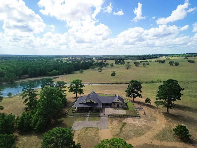 Welcome to Double O Ranch, an exceptional retreat set on 106 acres of Texas countryside north of Smithville, Texas & easily accessible from Highway 290 or Highway 71. Property is perfect for families, company retreats, or those looking to run cattle or have an excellent equestrian ranch. Just an hour from Austin, the ranch offers the privacy of rural life with easy access to the city, making it a unique find in Bastrop County. The main house is 3,925 sqft & includes one primary bedroom, two bathrooms, a laundry room, an office, & a covered porch that overlooks the rolling hills, panoramic views & 2.5 acre pond. A breezeway connects to a comfortable guest house with two bedrooms, two bathrooms, & a central living area. This setup is ideal for hosting family or friends. The ranch has a variety of features that enhance its charm & function. A 2.5-acre stocked pond with a dock & a windmill is nearby. The 40 x 60 barn includes two bedrooms with a Jack-and-Jill bathroom, offering additional guest space. Scattered across the ranch are mature pine & oak trees & extensive pastures. Well-suited for livestock, horseback riding & hunting. Irrigation exists within many areas of the ranch.