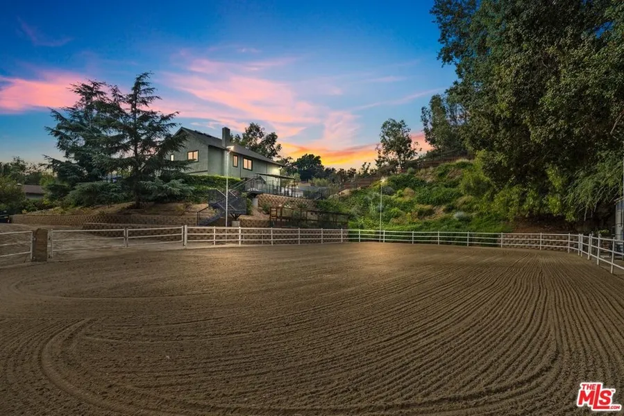 Nestled on 1.034A with a private gated entry and expansive views of the Foothills, this Charming Shadow Hills Traditional Ranch has a light-filled Living room with exposed vaulted beamed ceiling, ceramic tiled flooring, glass wine cabinet, Bar and open Dining area. There is a Gourmet Chef's Kitchen with stainless steel appliances. The Luxurious Mstr Suite has custom designed cabinetry. Mstr Ba with Steam Shower, Skylights. There are 3 additional bd rms. with hdwd Flrs. 2 1/2 designer bath. Inviting FR has a flr to ceiling bookcase, stone FP, recessed lighting and glass drs that open to a wonderful Alfresco Dining Patio which spans the length of the home and overlooks lush green hedges, landscaped terraces filled with Lavendar, Rosemary, Heirloom Citrus and Fruit trees. There is a covered dog run, chicken coop, and vegetable garden. This is all enhanced by magnificent California Oak, Elm and Cedar trees that provide shade to the 8 stall Mare Motel, 2 large Corrals,78x130 Arena, Wash Rack w/ Grooming area, Tack room w/ Hitching Post, Feed/Storage Sheds, Horse Trailor parking and a 1 bd Caretaker's Quarters. This is a once in a lifetime opportunity for the Equestrian enthusiast to acquire an exceptionally designed Gentleman's Ranch with privacy, tranquility and beauty in the heart of Shadow Hills.