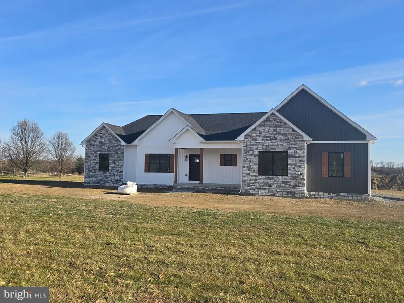 Elegant Country Retreat with Mountain and Pasture Views!!! Experience refined country living in this exceptional 3-bedroom, 2.5-bath custom-built home, perfectly positioned on a level, unrestricted lot! Blending timeless craftsmanship with modern convenience, this residence offers an ideal commuter location to Virginia while maintaining the serenity of a private, rural setting. Step inside to discover spacious, light-filled interiors designed for comfort and sophistication. Every detail reflects quality construction, from the thoughtful layout to the premium finishes throughout. Enjoy sweeping mountain and pasture views from the inviting covered front and rear porches, with a stone fireplace on the rear porch creating a stunning outdoor living space. The full walk-up basement offers endless possibilities for additional living space, recreation, or storage. Whether entertaining guests or savoring peaceful evenings at home, this property combines elegance, practicality, and natural beauty in one remarkable offering. COLOR SELECTIONS projected. Siding front board and batten white on porch and gable. Garage gable is board and batten graphite and the other two gables grayish stone. Rear and sides double lap siding 5" white. White cabinets with a white/slightly veined grey quartz throughout kitchen/baths/laundry. Under cabinet lighting in the kitchen. Stone with shiplap on both fireplaces. Some kind of gray LPV throughout. Kitchen backsplash (probably will be white subway tile). Black fixtures. Farmhouse sink. Tongue & Groove ceiling on back porch. Projected completion by end of 2025..