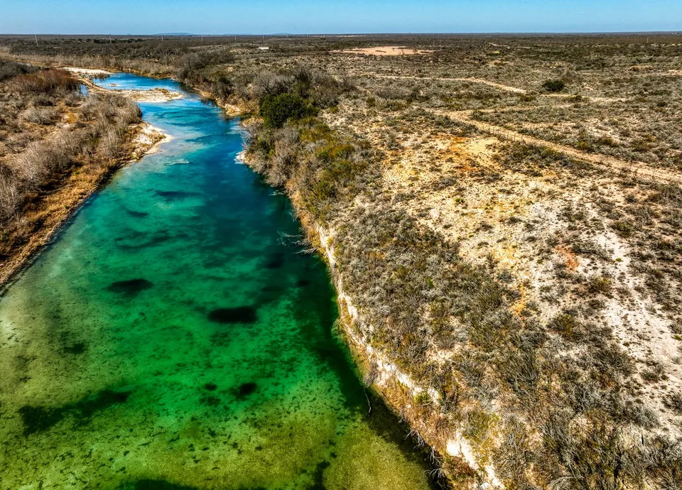 The clear, turquoise-hued Nueces River flows through the ranch, pocked with deep blue holes ideal for swimming and fishing even during dry years. The ranch holds water rights from the Nueces.