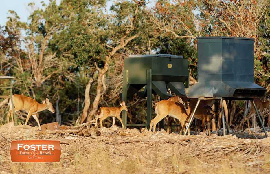 Improvements: The ranch boasts a main cabin, a secondary bar area, an extensive road system and a shared swimming tank. The main cabin has two bedrooms and one bathroom with a very clean interior. The secondary bar area consists of a small workshop, storage area and game-room; as well as, covered parking for all vehicles. The ranch has a little under 3,000ft of buried 1.5 inch poly pipe running from a 1,500-gallon storage tank to strategically placed water troughs throughout the property. Two blinds are in place, along with four corn feeders and two protein feeders. The current owners cleared unwanted cedar and installed a caliche road system connecting the various sections of the ranch, giving full access to all parts of the property.