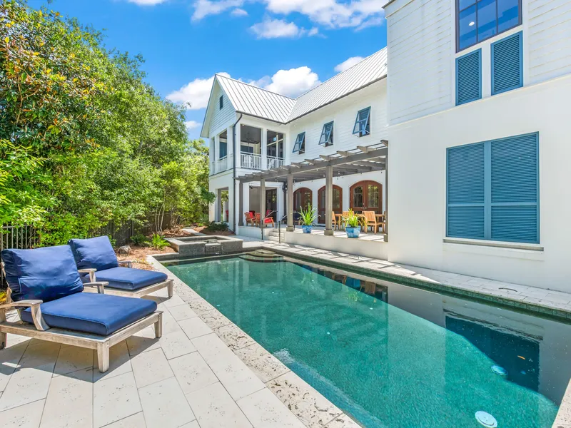 Step outside to the rear of the property where you'll find a private pool and spa, perfect for morning dips or relaxation beneath the shady pergola. The newly renovated Retreat Beach Club offers a community pool with superb gulf-front views and access to over 3,000 feet of private beach. Sports enthusiasts can enjoy boating, kayaking, and paddleboarding on nearby Draper Lake, or hiking and biking in nearby Point Washington State Forest. Scenic Highway 30A is lined with local restaurants, ideal for alfresco lunches with friends or a cool treat from Blue Mountain Creamery.