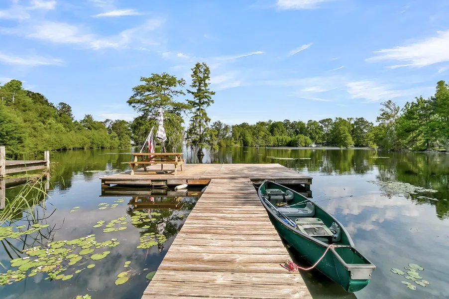 A Million Dollar View for Under a Million! LAKE MOULTRIE LAKEFRONT! Experience the timeless beauty of this intimate cove tucked serenely within majestic Lake Moultrie in Berkeley County. This rustic lakefront home offers the epitome of lake living with seasonal water lilies, irises, and more lining the private dock walkway to your secluded fishing and kayaking outings any time of day. Three neighborhood launches conveniently accommodate your boat trips on the 60,000-acre Lake Moultrie -- with both Waterfront - shallow and Waterfront - deep access, opening the door to a wider range of lake enthusiasts and buyers seeking diverse waterfront experiences. Whether you're watching the sunrise over the lake or enjoying a peaceful evening paddle,this waterfront property delivers the dream of serene lake life. As you approach the home, a wood rail fence, mature trees and flowers, expansive yard, and thoughtful landscaping set a tone of tranquility. Designed with a reverse floor plan to take full advantage of the breathtaking views, the upper level features an open-concept living area and kitchen. The kitchen is a warm and inviting space with knotted pine cabinets, granite countertops, a breakfast bar, dual sinks (including a separate vegetable sink), and stainless steel appliances, including a new GE refrigerator and a ZLINE convection gas range. Vaulted, beamed ceilings enhance the openness and natural light, while the adjacent family room offers ample space to relax and unwind. Just off the main living space is the sunroom, one of the home's most cherished spots. With soaring ceilings and panoramic windows, it's the perfect place to enjoy incredible views of the backyard, lake, and surrounding wildlife. You'll love watching ducks, geese, egrets, bald eagles, deer, white squirrels, and all sorts of local wildlife from the comfort of your home. Step onto the deck from the sunroom to enjoy even more outdoor living whether it's coffee at sunrise or a glass of wine at sunset. The lower level houses the primary bedroom, a peaceful retreat with access to a large, covered porch overlooking the lake. The en-suite bathroom features a Jacuzzi 10-jet tub, a large step-in shower finished with natural stone and colored glass block, a marble vanity, and travertine tile flooring. Two additional bedrooms, another full bath with equally fine finishes, and a generous recreation room complete the interior layout. Outside, the magic continues. The backyard, with its mature trees and open space, is ideal for entertaining or simply enjoying the peace and beauty of the lake. From here, stroll out to your private dock, where lake adventures await. A 12x26 carport provides plenty of storage for your boat, camper, jet ski, or other vehicles, making it easy to enjoy every aspect of life on the water. This home is conveniently located just over 30 miles from the Volvo Car US Operations in Ridgeville and the Naval Weapons Station in Goose Creek. This is more than just a home; it's a lifestyle! Come experience what makes Lake Moultrie living truly special. ***Ask about the possibility of receiving 1% reduction in interest rate and free refi.***