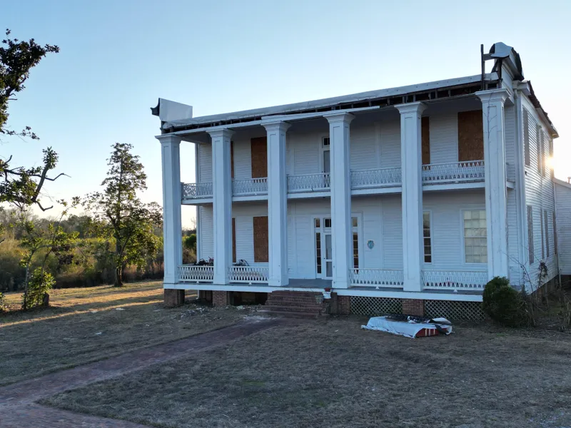 The antebellum home, a product of meticulous craftsmanship, embodies the elegance and opulence characteristic of the pre-Civil War South. Its neoclassical design features a symmetrical faade adorned with towering columns, each bearing witness to a century and a half of Southern history. The exterior, once a pristine display of white, now bears the scars of the recent tornado, but even in its damaged state, the home commands attention and admiration.