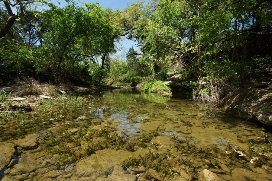 Major Price Reduction! An absolutely amazing 9.81+/- acre tract that offers your own private spring fed lake, South Fork San Gabriel River frontage and incredible long distance hill country views.