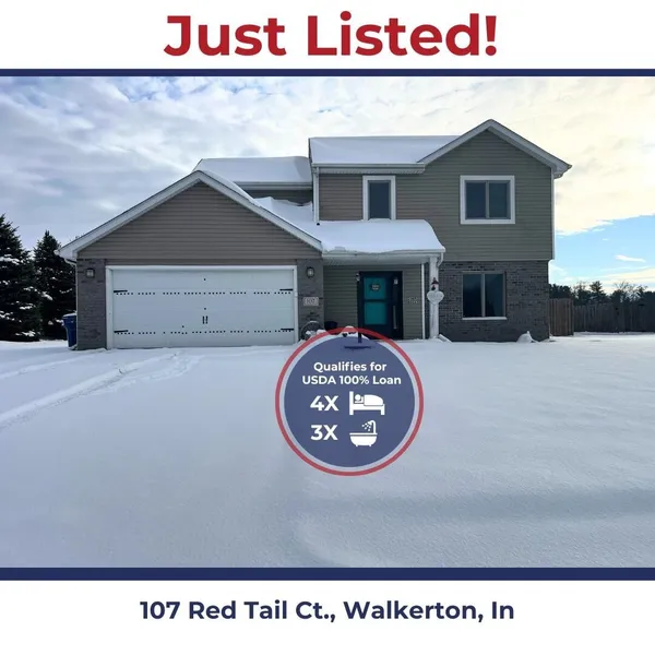 *ATTENTION FIRST TIME BUYERS* THIS HOME QUALIFIES FOR A USDA NO MONEY DOWN LOAN* This Lovely 2 Story Family home sits on a quiet low traffic street in the Wonderful area of Walkerton! This home boasts 4 Bedrooms + 3 Baths + Several large rooms including an Impressive Gourmet Kitchen complete with Appliance Package + Open Concept to Dining and Family Room w/Fireplace and Gorgeous Views of the Patio and backyard which is Perfect for Entertaining! There is also a Den or Home Office on the main level so you can work from home and be close to a kitchen for coffee and midday snack! Primary bedroom has private ensuite for that 'me time' you so desperately need! Laundry on main level with Garage access makes it easy to bring in groceries and leave your dirty boots in the mudroom! Add some new carpet + fresh paint + some basic cosmetic touch-ups and you will have a home that feels better than new!