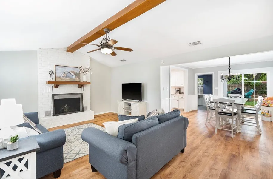 Turn-Key Fredericksburg STR with Superhost Status! This beautifully updated Fredericksburg short term rental is set up to deliver an exceptional guest experience. Three bedrooms, two full baths and a permit for up to 8 guests makes this ideal for couples or groups exploring Fredericksburg and the Texas Hill Country. Inside, the home impresses with tall ceilings, a living area centered around a brick fireplace and a fully stocked kitchen featuring granite counters, stainless steel appliances and white shaker cabinetry. Recently remodeled bathrooms are finished in timeless tile enhancing guest appeal. Guests consistently praise the home’s amenities: game room with shuffle board and darts, private hot tub, fire pit seating area and mature trees...a setting that encourages both relaxation and fun. Combining style, strong guest demand, and Superhost status, this property is primed to deliver both exceptional experiences and lasting value!