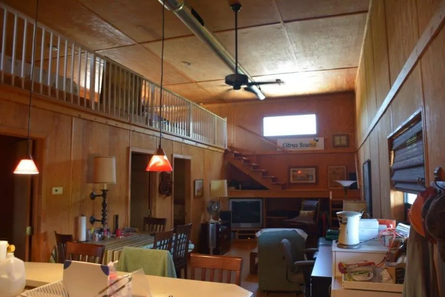 The property includes a covered barn totaling approximately 3800 SF with approximately 1050 SF enclosed as living quarters.