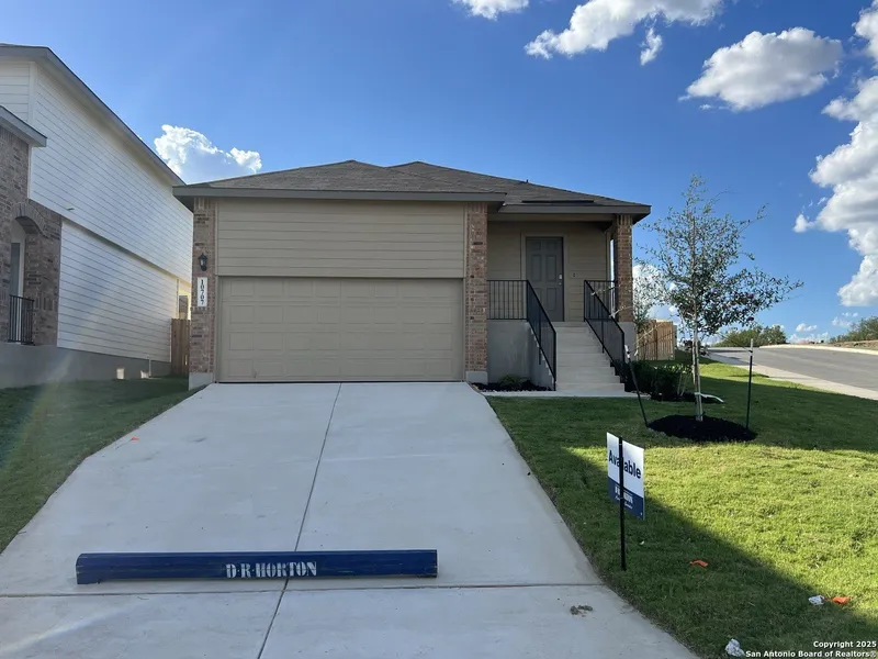 The Caprock is a charming one-story home featured at Applewood in San Antonio, TX. Featuring 2 classic front exteriors, this 3 bedroom, 2 bathroom home also offers 1435 square feet of living space and a 2-car garage. A front porch (per plan) welcomes you into the home and opens to the gourmet kitchen which includes quartz counter tops, quality cabinets, stainless steel appliances and an open concept floorplan with the kitchen flowing seamlessly into the dining room and living room. The main bedroom has an attractive ensuite bathroom that features a quartz vanity countertop and quality cabinetry. Enjoy additional storage with a spacious walk-in closet located off of the primary bathroom. Your secondary bedrooms all feature quality carpet flooring and a closet, and can be used as bedrooms, offices, work out spaces or other bonus rooms. The possibilities are endless with The Caprock floor plan. Additional features include sheet vinyl flooring in entry, living room, and all wet areas, quartz counter tops in all bathrooms and HOME IS CONNECTED base package. Using one central hub that talks to all the devices in your home, you can control the lights, thermostat and locks, all from your cellular device.