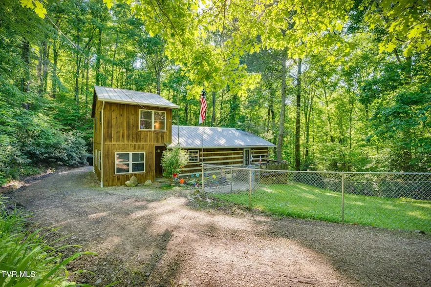 Escape to your own private oasis with this stunning log cabin nestled on over 1 acre of land, surrounded by the serene beauty of the Cherokee National Forest. Enjoy breathtaking views of the forest from your back porch, offering a peaceful retreat from the hustle and bustle of everyday life. This property is located on a secluded road just minutes from the Paint Creek Recreation Area, Viking Mountain, and a variety of hiking trails, including the renowned Appalachian Trail. Conveniently situated only 10 minutes from the North Carolina border, you'll have easy access to the charming towns of Hot Springs and Asheville. The owners have spared no expense in upgrading this home, with a brand new Kohler walk-in jetted tub in the spacious bathroom, perfect for unwinding after a long day of exploring the great outdoors. Additionally, a new HVAC system, fence, gutter system with screening, and appliances, including a fridge, washer, and dryer, have been recently installed. The septic system was recently pumped and inspected ensuring peace of mind for the new owners. Don't miss out on this rare opportunity to own a piece of paradise in the heart of nature's beauty.