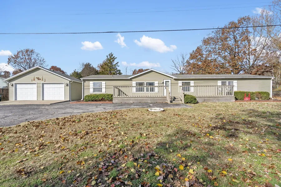 An inviting asphalt driveway leads to this well kept 4-bedroom, 2-bath home on a spacious 0.72 +/- acre lot just a short drive to Table Rock Lake. A two car detached garage and a generous front deck welcome you inside where the living room flows seamlessly into the dining area and kitchen. The kitchen offers abundant cabinet space and opens to a charming hearth room featuring a cozy fireplace and built in cabinets. The large primary bedroom includes an ensuite bath with a soaking tub while three additional bedrooms share a full hall bathroom. Enjoy peaceful outdoor living with a second deck that overlooks the deep backyard offering plenty of room to spread out. With comfortable indoor space and an excellent location near the lake this home provides an affordable opportunity to enjoy lake area living with the convenience of four bedrooms.