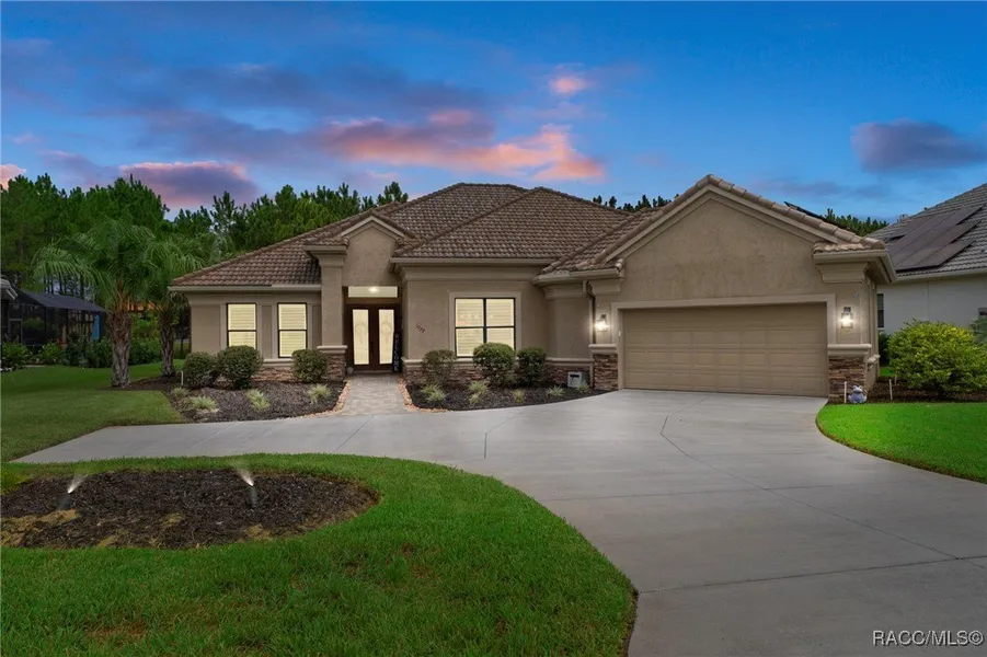 STUNNING CUSTOM SOLAR HOME WITH POOL IN FIVE STAR GATED LUXURY COMMUNITY OF CITRUS HILLS! If you are considering building a new home, take a look at this beautiful home first! This FULLY CUSTOMIZED Dali model home has 3 bedrooms PLUS a large study/office/ possible 4th bedroom flex space. The custom front door welcomes you and your guests home with a paved entrance and view that pulls the eye out into the large pool through the fully extended custom sliding doors. Entertaining is easy with this open floor plan so guests can ease onto the lanai pool area,into the beautiful living room with volume ceilings, get apps in the kitchen on the massive island or sit in the formal dining room. The master suite has a very large area that has two large walk in closets, two seperate corner sinks, walk in shower and closed toilet area. The two other bedrooms are great sizes for large scale furniture. The flex area is large enough for a 4th bedroom if you add a closet! The owners have spared no expense in the kitchen either. The gas stovetop is top of the line with a custom hood. The appliances and countertops and cabinets are all top of the line as well. Do you need space for your toys? No worry as this garage has been customized and angled for more room for a golfcart, tool area, or any toy you may have or want to get. The custom flooring is done for you and looks stunning. The beautiful furniture is also negotiable for ease of moving. Looking for energy efficiany? The radiant barrier in the attic has been added as well as a solar system for MUCH lower utility bills that are increasing yearly. Newer home, plenty of space, energy efficient, luxury finishings, win win win!!! Do NOT miss viewing this one!