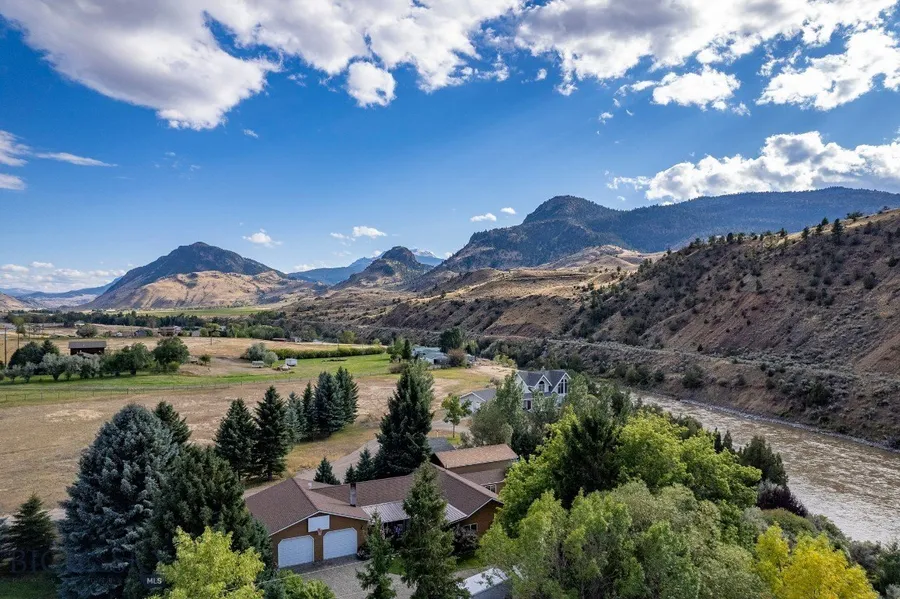 YELLOWSTONE RIVER FRONTAGE! This phenomenal property is a rare find with amazing river frontage located 10 miles north of the world-renowned Yellowstone National Park. A spacious, one level home with 3BR, 2 baths, an inviting open floor plan, and a private patio overlooking a beautifully manicured tree-lined lawn leading down to the river. Enjoy a soak in the hot tub under the stars as you listen to the river flow by. This home has an oversized attached double garage large enough to park full sized trucks/SUVs and still have plenty extra space for storage, freezer, etc. Plus another large shed to store all of your yard equipment, ATVs, and toys so they aren't taking up space in your garage. In addition, there's another garage/ADU with tiled 3/4 bath and full kitchen complete with a triple bay commercial sink, making for the perfect spot to do your home canning, game processing, or any other projects. It functions easily as guest quarters or as the premier top-of-the-line man cave. Wildlife visits are common throughout the year, you will see elk, deer, bison, big horn sheep, an occasional bear, and of course all the waterfowl and birdlife known to frequent the Yellowstone River. This makes for a great retreat, vacation home, or full-time residence. Perfect for the outdoor enthusiast, this is the ideal base camp situated near millions of acres of Forest Service and all the splendor and beauty of Yellowstone Park. This place is truly a private oasis in a location that is so incredibly special, you're sure to be filled with wonder and amazement during every season!
