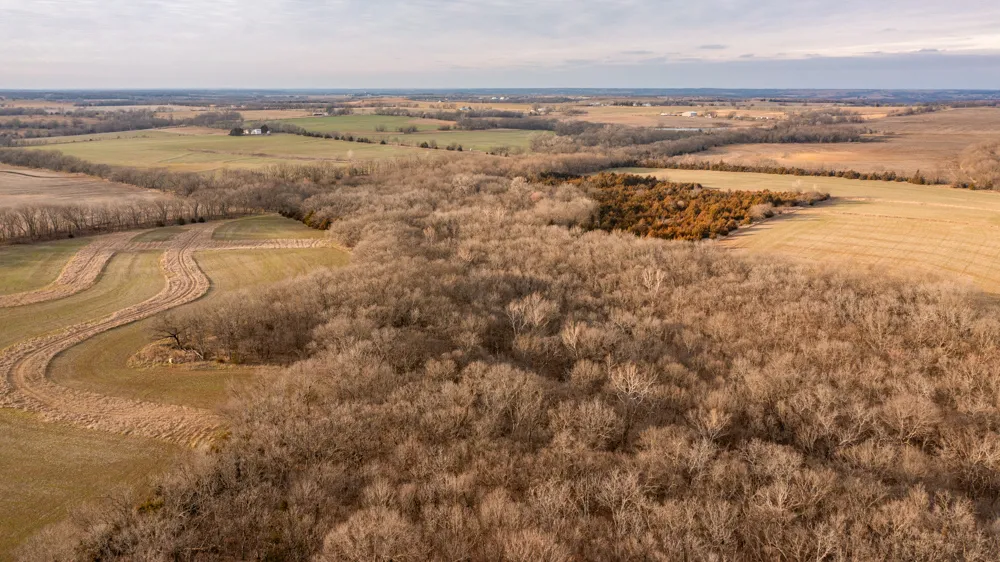You won't likely find a more proven tract of land in Douglas County for producing "Booner" quality whitetails than this one. With a decade of big deer history and the harvest records to prove it, this farm stands out as one of the top-producing whitetail hunting farms of its size in Eastern Kansas. Located just 20 minutes from Lawrence, and 10 minutes from Clinton Lake, it is private and secluded as they come, yet close to the lake and close to town for easy commutes. Big hardwood timber draws, towering oaks, tons of deer trails, and excellent stand locations. A few dense cedar thickets for prime bedding, and 40 acres of tillable ground to feed the deer and pay the taxes. Two Redneck blinds on the property will transfer to the buyer and are set up in premium locations. A trail system makes access on the property quite easy, and there are two places for someone wanting to build a nice pond on the property that would suit well. A rural water meter is already on the property, and electricity is available right at the road. This property has it all, located in one of the most scenic parts of the county, abundant in privacy and beauty, and full of wildlife. Give Shay Haddock a call at (913) 222-4257 today to make it your own!