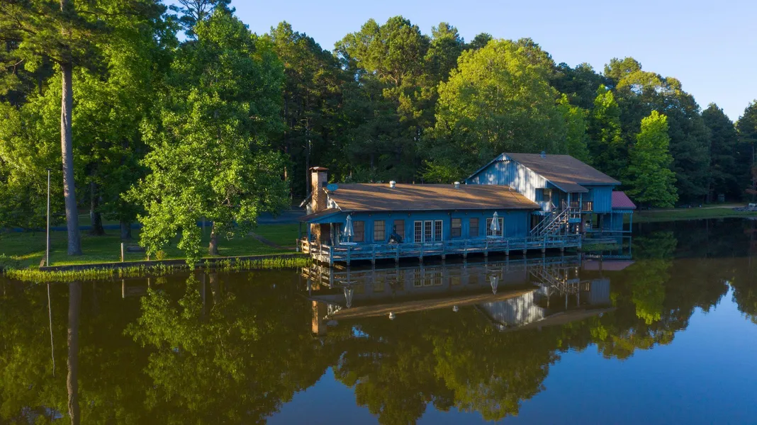 - A boat house connected to the lake house includes 2 slips, an enclosed storage area for fishing gear and a patio with a fire pit for conversation and enjoying the serenity and peaceful charm of the lake