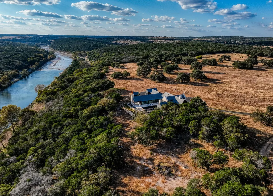 Encompassing 108 acres in Kerr County just 25 minutes from Kerrville, Panther Creek Ranch is a beautifully unique live water property. The stunning ranch, located off Texas Highway 39, offers 1,187 feet of completely private access to both sides of the beloved Guadalupe River paired with a high, flat-topped ridge that keeps the custom-designed home and outbuildings out of harms way when the river floods.