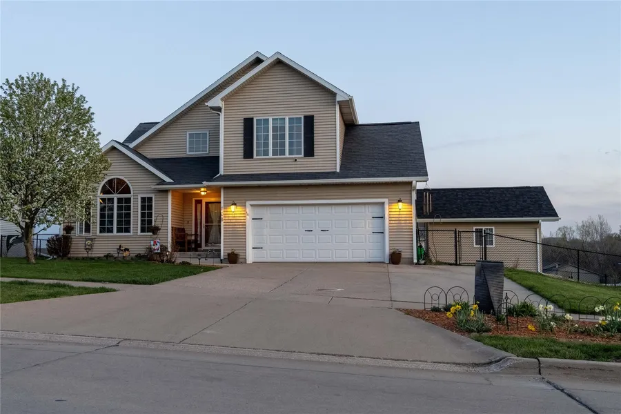 Modern Comfort with a Country Feel, 30 Minutes from Jordan Creek!Located in Country Club Estates looking over the beautiful golf course, this beautiful home offers stunning views, friendly neighbors, and easy access to I-35. Enjoy an open-concept layout with vaulted ceilings, solid wood flooring, and a Heat & Glo gas fireplace. The kitchen features a custom cherry wood butcher block island, quartz countertops, and two pantries.Upstairs, the master suite boasts vaulted ceilings, a jetted tub, walk-in closet, and full bath. Two additional bedrooms and a full bath complete the level. The finished lower level offers a family room, half bath, and flex room ideal as a 4th non conforming bedroom, office, or gym.Step outside to a newly rebuilt deck, 10' x 16' gazebo, and a fenced in backyard. The heated two-car garage includes a brand-new storage room with an overhead door for added convenience and golf cart storage to make your golfing dreams come true.With recent upgrades, new landscaping, this move-in-ready home is a must-see!