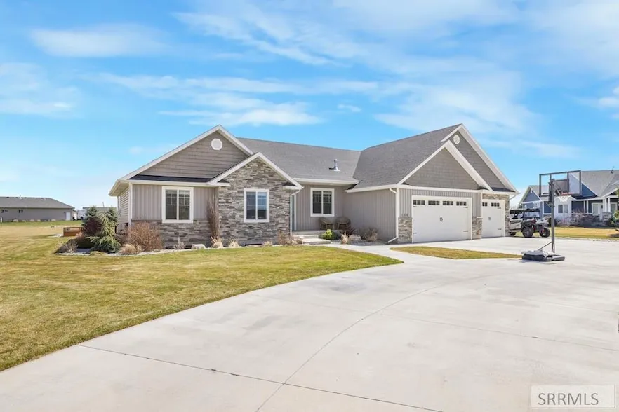 Welcome to this beautifully maintained and thoughtfully designed home, perfectly situated on a spacious one-acre lot in a quiet cul-de-sac. With exceptional curb appeal, mature landscaping, and ample space both inside and out, this property offers the ideal blend of luxury, comfort, and functionality. Step inside to discover an open-concept main floor featuring a bright and airy layout with vaulted ceilings that create an inviting and expansive atmosphere. The kitchen is a true showstopper, boasting sleek granite countertops, modern lighting and fixtures, and ample cabinetry for storage. The adjoining dining and living areas make entertaining a breeze. This home features six generously sized bedrooms, including a luxurious main-floor primary suite complete with a spa-like bathroom. Enjoy a soaking tub, a separate walk-in shower, and a spacious walk-in closet for all your storage needs. The fully finished basement adds even more livable space, offering a large family room perfect for movie nights or gatherings, and a cold storage room to keep your pantry items organized year-round. The fully landscaped yard includes a play area with turf, a shed perfectly matching the home, and raised garden beds. Don't miss this beautiful home!