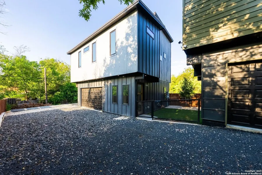 URBAN MODERN LIVING. Experience stylish downtown living in this thoughtfully designed 2 bed, 2 bath home with an office and spacious utility room. With 1,681 sq ft (including garage), Unit #103 offers an open second-floor layout that maximizes natural light and showcases city views through expansive windows. The sleek kitchen boasts quartz counters, stainless appliances, custom cabinetry, and designer touches like a pot filler and full backsplash. Vaulted ceilings, sliding glass doors, and a metal-railed ba