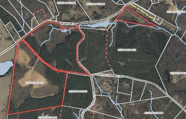 108.3 acres on Daventon Road. Mostly wooded with loblolly pine timber and some open areas. 7300'+ road frontage on 3 roads. There is a 6 acre parcel that fronts Horse Creek. Great timber investment or buy for development. Zoned R-S. Public water available. Great hunting opportunities. Only 25.8 miles to Greenville.