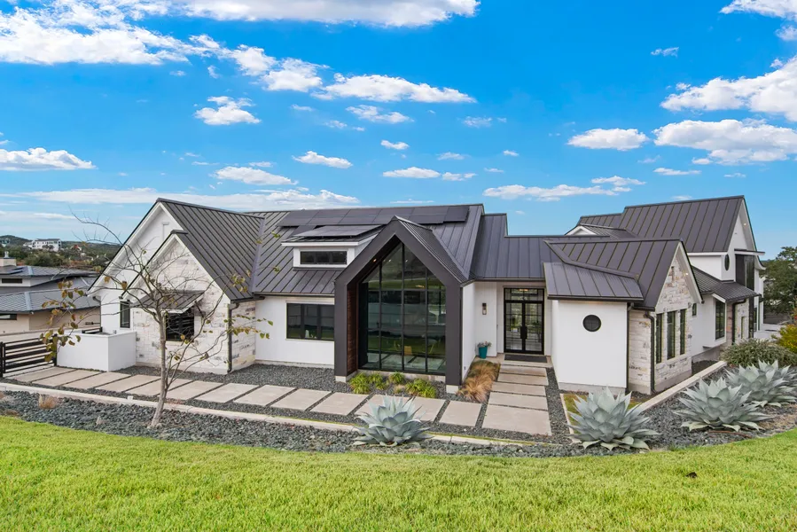 Exceptional custom residence in the Canyons at Scenic Loop, crafted with refined finishes and a modern, highly functional floor plan. The home is defined by soaring ceiling heights, abundant natural light, walls of windows, and thoughtful architectural and lighting details that elevate every space. The chef’s kitchen showcases a large waterfall island, custom cabinetry, and seamless flow into the family room for effortless everyday living and entertaining. A privately owned solar panel system provides enhanced energy efficiency and significantly reduced utility costs, a rare advantage in this community and an important highlight of the property. The primary suite offers a serene retreat with a spa-inspired bath and an oversized walk-in closet. Four generously sized guest bedrooms provide flexibility for family, guests, or long-term stays. Multiple living and entertainment areas include a game room, a separate media room, and a dedicated library. A private flex room off the outdoor area is ideal for a gym, studio, workshop, or hobby space. Situated on an oversized corner lot, the outdoor living environment is designed for year-round enjoyment with a premier spa, expansive decking, large covered patios with wood-paneled ceiling accents, and a stacked-stone fireplace overlooking the tranquil surroundings.