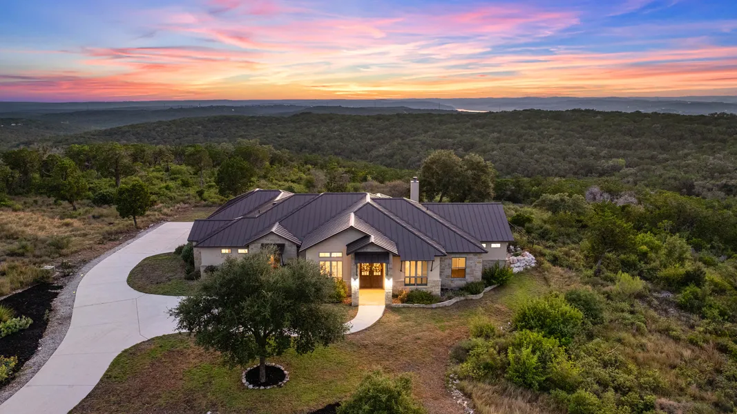 Set on 3.3 acres in the gated Summit Ridge community, this single-story custom home offers privacy, functionality, and striking Hill Country views. Designed with an open layout and thoughtful finishes throughout, it delivers both everyday comfort and an ideal setting for entertaining. Inside, the gourmet kitchen stands as the centerpiece with professional-grade Viking, Thermador, and Bosch appliances, complemented by custom cabinetry and expansive living and dining spaces. Wide-plank wood tile flooring carries throughout the main areas with no carpet in the home, while touches like touchless faucets, built-in cabinetry, and a flexible bonus room enhance convenience. The garage includes a workbench and additional storage, and energy-efficient details such as a tankless water heater, in-wall pest system, blown-in insulation, and dual Trane HVAC units provide peace of mind. Outdoors, the property transforms into a resort-style retreat. A sparkling pool and spa anchor the backyard, complete with an outdoor fireplace and grill for gatherings. The expansive lot offers unmatched privacy with no rear neighbors, while the west-facing orientation frames dramatic sunsets over rolling hills and Medina Lake. With its quiet setting, custom design, and seamless blend of style and function, this home captures the essence of Hill Country living.