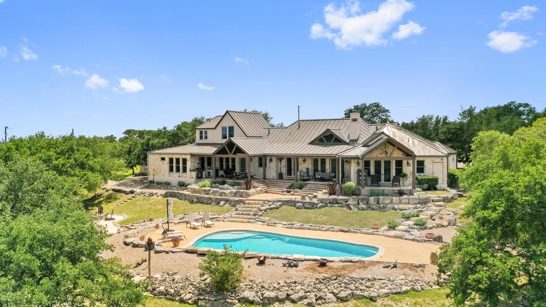 This is a RARE Opportunity! This 26.65+/- Acre Ranchette is absolutely stunning. The home is custom built and offers 3759 sq. ft. This spectacular home has extremely high end finishes and will stun you with its beauty. It offers 4 bedrooms and 4 baths with a large office that could easily be used as a 5th bedroom. All the windows have beautiful window treatments. The interior is filled with amazing rock interior walls and beautiful wood finishes. The master suite is stunning and offers amazing views of the pool area and distant hills. The master also includes a fireplace, double vanity's, walk in shower, and tub. There are 2 guest bedrooms downstairs and one guest suite upstairs. The outdoor area includes and custom pool, outdoor kitchen area, and tons of covered porch space. The landscaping is nicely done and the entire property is groomed to perfection. Also included is a beautiful horse barn that includes 4 stalls with outside turnouts, tack room, feed room, and bathroom. There is also a pond on-site that is seasonal. The land is fenced and cross fenced to create nice paddocks for horses and livestock. This is all located inside the gated community of The "Landing at Blanco". The hill country views from this property are jaw dropping. Amenities for the development include a 3,400-foot private runway only available to property owners. The Landing is conveniently located only 45 minutes from Austin and San Antonio and is close by to Fredericksburg, Wimberly, Johnson City, and Marble Falls.