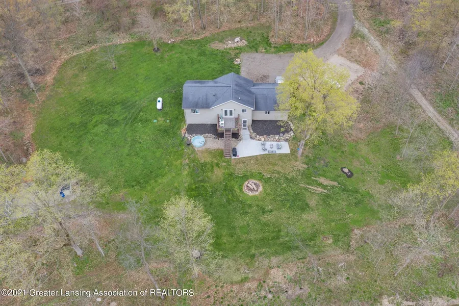 Welcome to Wilderness Circle. On a secluded 5+ acres this beautifully updated 3-bedroom house is just waiting to welcome you home. You are greeted to the main floor by the stunning vaulted ceilings and arched window beaming with natural light. The open floorplan graces a grand living room and formal dining space. The crisp and bright kitchen has a custom Amish Island where everyone is sure to gather/ Finishing the main level is a master suite with walk in closet and attached bathroom. The lowerlevel features two additional bedrooms, a full bathroom, laundry room, and a spacious living room with walk out to the patio. AaA Now the adventure begins! Over 5 acres with two bridges connecting to the creek with walking trails and a pond to explore. Short drive to Charlotte, Ionia or Grand Ledge for shopping and a 10-minute drive to Lake Odessa with public beach, boat access Easy commute to Grand Rapids or East Lansing. Schedule your showing today!