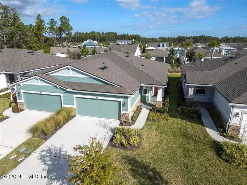 Move right into this immaculate 2 bedroom+flex room, 2 bath, home with a 2 car garage, in popular, gated, Watersong at Rivertown on interior lot, in a section where builder construction and streets are complete. The bond portion of the CDD fee has been paid off by the sellers, an extra bonus! Features include pendant lighting, quartz countertops, quality stainless kitchen appliances and gas range, architectural rock features and Shark coating on the garage and rear patio flooring. Landscaping, exterior maintenance, and reserves are included in the maintenance fee. Amenities are very nearby and include dog parks, pickleball courts, a heated lap pool, a resort style pool, hot tub, fitness center, biergarten, clubhouse, bocce, spa, gas fire pits, paw parks & much more. Many organized activities and clubs are available to join. A full time lifestyle director & CAM are on staff. Residents also have use of Rivertown amenities including the RiverClub, RiverLodge & RiverHouse.
