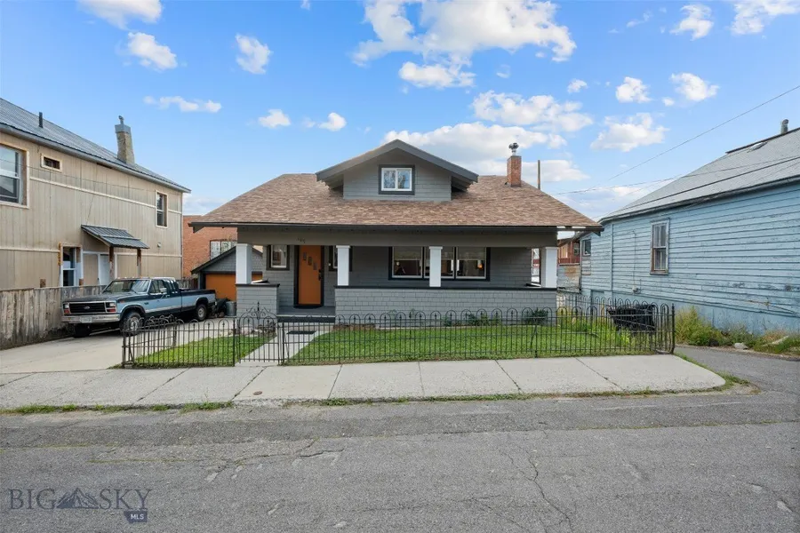 This 1918 Sears Craftsman combines an excellent location with preserved historic character and modern luxury upgrades. Situated near Montana Tech, St. James Hospital, and Uptown's shops and dining, the home offers convenience with rare features and high-end updates. This 3-bedroom, 2-bath home offers approximately 2,000 sq. ft. of living space and has been completely remodeled from top to bottom. Updates include modern plumbing and fixtures, a 200-amp electrical service, new attic insulation, interior and exterior paint, and beautiful real maple hardwood floors that flow throughout the main living areas. Comfort is further enhanced by a new furnace, smart thermostat, and a wood stove that add both warmth and character. Step inside to a bright open-concept floor plan enhanced with original coffered ceilings, exposed beams, brick accents, and built-ins that showcase the home's Craftsman heritage. The chef's kitchen is designed for both function and style, featuring granite counters, a rolling butcher block island, modern cabinetry, and updated appliances. The bathrooms are fully renovated: the main-level bath features a soaking tub with tiled surround and new fixtures, while the upstairs primary suite offers a true retreat with a walk-in closet, extended storage, dual sinks, dual shower heads, and a private sauna. Extensive updates included BSB testing and remediation, ensuring the home is as safe as it is beautiful. Additional highlights include a rare detached 2-car garage with wood stove hookup ready for future heating, off-street parking, and inviting outdoor spaces with a covered front porch, wrought-iron fenced yard, and a back deck with western views. Laundry and extra storage are located in the basement. Blending history, craftsmanship, and modern amenities, this move-in ready Uptown home is a one-of-a-kind opportunity in today's market. Reach out to schedule a showing today!