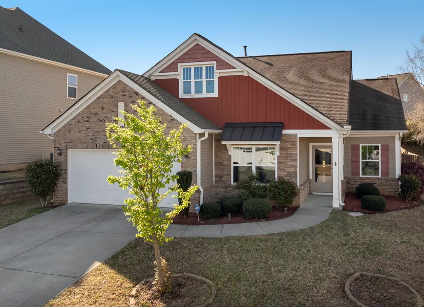 Charming Craftsman-Inspired Ranch. Move-In Ready! This beautifully maintained home blends classic charm with modern convenience. Featuring hardwood-style laminate floors, an open-concept layout, and a versatile sitting room, it's both functional and stylish. The eat-in kitchen boasts granite countertops, stainless steel appliances, and a breakfast bar. The spacious great room centers around a cozy gas-log fireplace. The private master suite offers a walk-in closet and an en-suite bathroom with dual vanities, a garden tub, and a walk-in shower. Two additional bedrooms, a full bathroom, and a laundry room complete the interior. Enjoy the fenced backyard with a covered patio, perfect for relaxing or entertaining, plus a neighborhood pool nearby. Located minutes from I-385 and downtown Simpsonville and Fountain Inn, this home offers comfort, charm, and convenience. Schedule your showing today!
