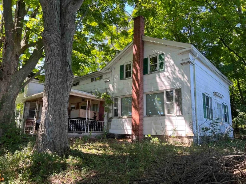 The farmhouse was built in the late 1800s with a typical stone foundation, root cellar, large country style eat-in kitchen, dining room area, first floor full bathroom, living room, one bedroom on the first floor and four bedrooms on the second floor. The main source of heat in the house is a fuel oil, forced air furnace. There is an attached 2 car garage with an attached woodshed and some attic storage space. There is a drilled well and septic system. Behind the house is a traditional wood-sided post and beam barn with an addition. The house and barns are being sold as-is, and are in need of repairs and maintenance. The oil, gas and mineral rights will transfer to the new owner.