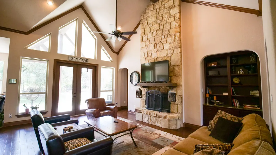 The property has a barn and tack room that's ready for horses or other livestock. Property has fencing in place for livestock or pets. There are two ponds on the property: one in front of the main home, and one just beyond the back yard that is over 1/2 acre in size and looks great for fishing. You can relax and recreate with just a short walk to either one. The rear of the property is wooded and would be great for hunting, horseback riding, or ATV's. Numerous large oaks, water oaks, cedars and some mesquites make up the wooded area.