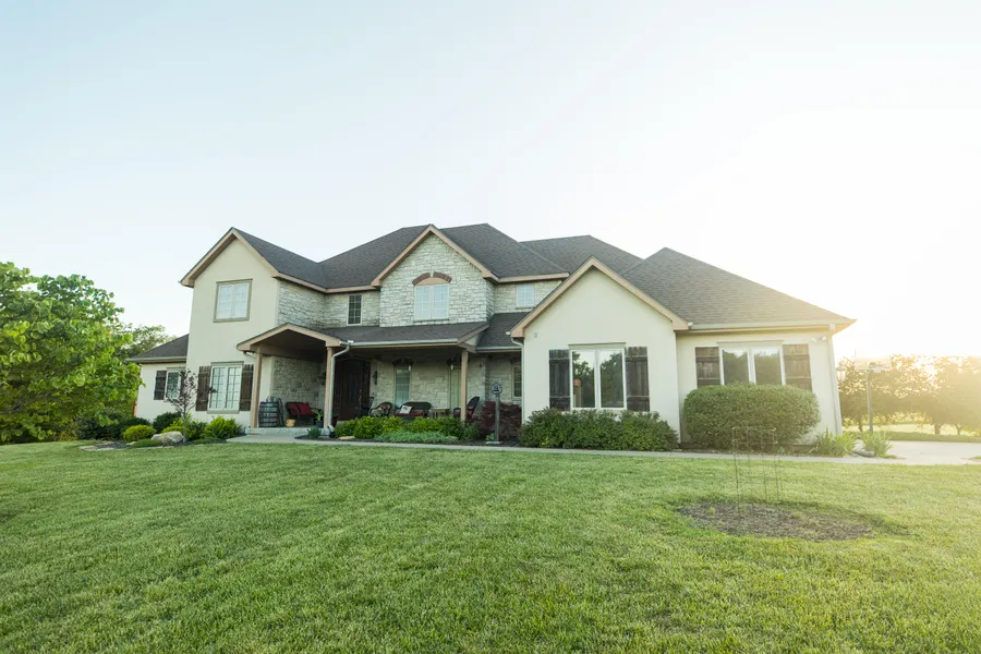 Sportsman Estate on 57 acres that includes a high quality 5200+ square foot home with 4 bedrooms, 3.5 bathrooms, finished walkout basement that includes mother-in-law living quarters/apartment with kitchen, large storage room and living room. The main living area features a great room with vaulted ceiling, open kitchen/ dining room/ hearth room with wood burning fireplace, main floor laundry, and 3 car garage. The outside features an inground salt water pool, pool house with half bath, firepit area and child proof perimeter fence, there is a large metal shop with concrete floor with water and half bath, and a 30 x 30 horse barn. There is apx 30 acres of timber, and the rest is brome hay fields and horse pasture. There is a foodplot area and an elevated box blind that will remain with the property, as well as riding trails and a creek. This is a rare opportunity to own such a beautiful home a recreation property. The property is 20 minutes from Topeka, 55 minutes from KC, and apx 90 minutes from KCI airport.