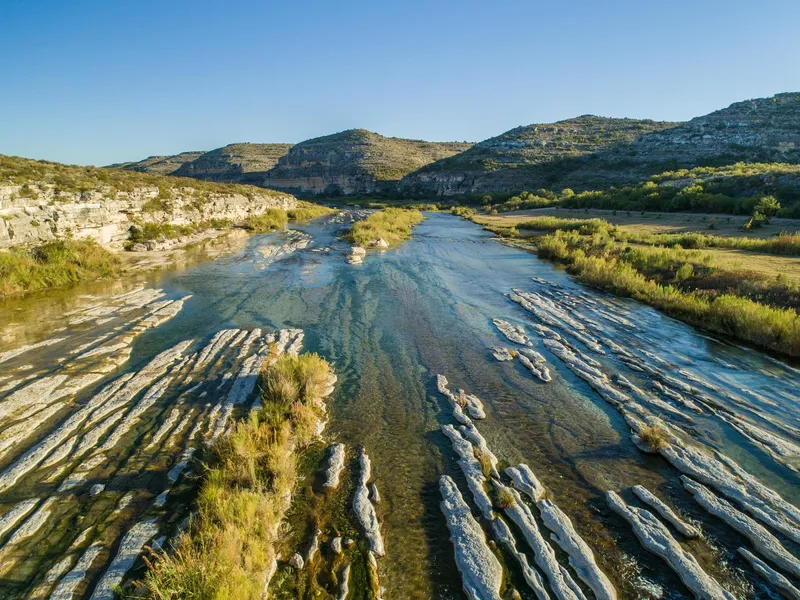 The Lower Pecos River, much like the nearby Devils River, is supported by area springs as outflow from the Edwards-Trinity Aquifer and located in one the most intact river environments in Texas offering unique streamside habitat such as willow, live oak, hackberry, mesquite, river cane, and many riparian plants, including a wide diversity of flowers and blooming cacti.
