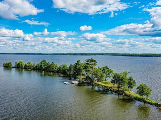 Imagine owning your own private Island for a definite private getaway! On the market for the first time in 80 years. Swimming, boating, fishing, bird hunting, ice fishing on a 3500+ acre lake. This Pelican Lake Island with 1800 ft. of frontage is paired with a 1.2 acre buildable lake lot. The 2 bedroom, 1 bath cottage has all modern amenities: electric power, water, telephone, ac units, and electric heat. Recently remodeled kitchen and new bathroom. Cottage has metal roof, new deck, beamed ceilings and walls of windows. There is a wood burning fireplace in an open concept living area. There is an outdoor shower, fire pit area, sand swimming frontage and large trees. The Lake Lot has 100 ft. of frontage with 280 ft. of depth for plenty of room to build a year round home. It has a 2 car garage, western exposure, gentle slope to the water, beautiful sandy beach for swimming and provides for easy island access.