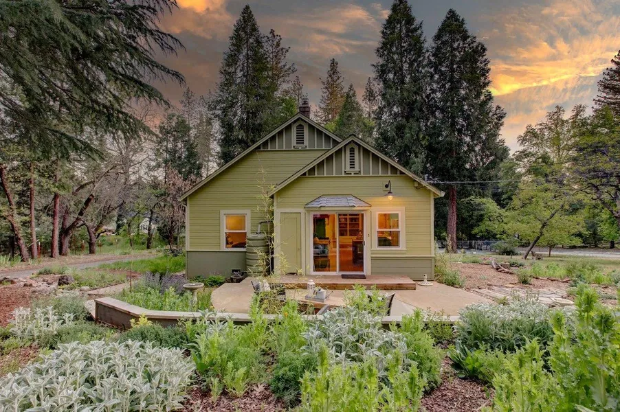 Welcome to your dream 1930's 3Bdrm, updated bungalow nestled off the road on 1.5 acres, a rare and special property! This sweet home offers timeless charm with thoughtfully curated eco-conscious vintage-style upgrades and easy indoor-outdoor living. Under a mile to the heart of downtown Grass Valley, offering the perfect balance of convenience and tranquility. This home has been lovingly updated with a new roof; new all-natural insulation; unearthed and restored original hardwood floors; kitchen; master bath; dual-pane windows, pollinator garden; rainwater catchment; Tesla solar panels, Powerwall; and more! Step outside the kitchen sliding door to a charming multi-level patio perfect for entertaining. The gorgeous mountain-chic gazebo made from trees milled from the property, a perfect spot for outdoor BBQing and summer sippin' with family and friends, not to mention a new Jacuzzi to finish the day! This place is a gardener and homesteader paradise, with mature fruit trees, amazing soil, plenty of room for veggie gardens and chickens. Additionally, folks will delight in the proximity to awesome music venues, restaurants, breweries, shops, farmers market, easy freeway access and the newly restored Ridge Flower Trail, a mere minute away, perfect for walking your furry companions.