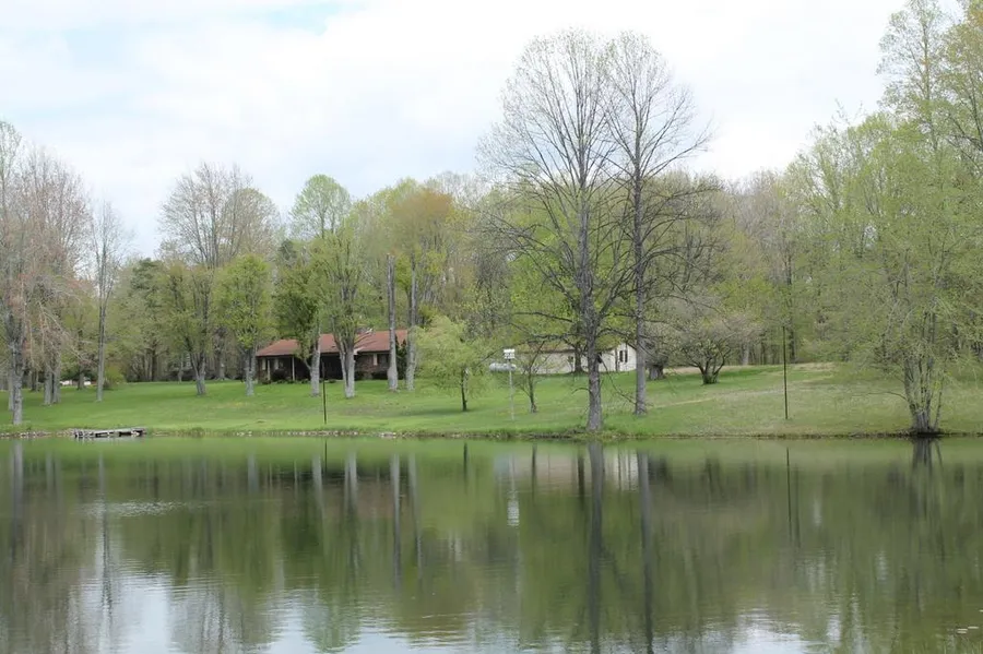 4 acre lake just outside your door. Plenty of fishing: bass, bluegill, channel cat, grass carp. Large living room with high ceiling and pretty gas log fireplace. Kitchen updates including cabinets. Step up to 3 bedrooms (including master with full bath). 1-car att gar w/laundry & storage room. 42x22 workshop w/woodstove & electricity. Det. 2 -car garage w/storage. Septic redone 2012. Cost-saving dual water system and heat pump with propane backup furnace. Very impressive setting.