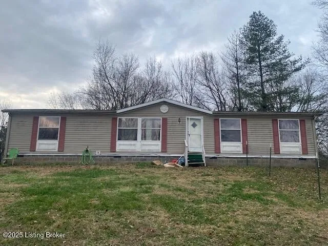 Four Bedroom Two Bath vinyl sided manufactured home with 26x60 building situated on 11 wooded acres & located in New Haven, Ky. Home offers 1560 sq. ft. of living space with laminate, carpet & vinyl flooring. Rear deck provides outdoor enjoyment with views of the wooded acreage.