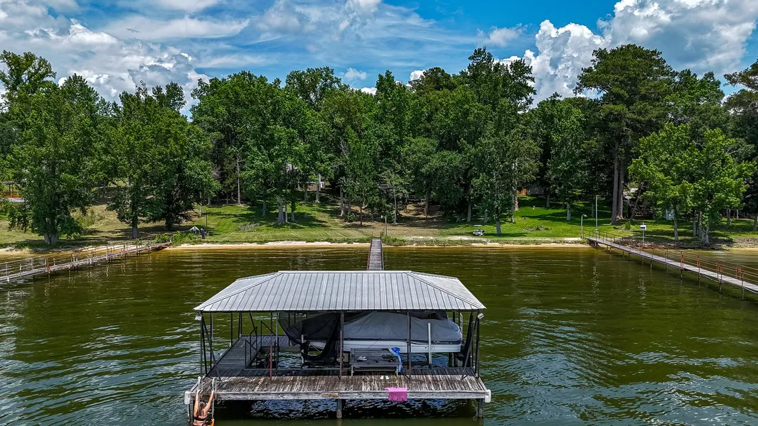 Outside, youll find a rare sandy shoreline that offers smooth, walk-in lake accessno seawall required. The deep-water dock is equipped with power, water, and an electric boat lift. With a reasonable offer, the 23 ft. Chaparral ski boat can be included. A block storage shed with lean-to provides convenient space for tools, gear, and lake essentials.